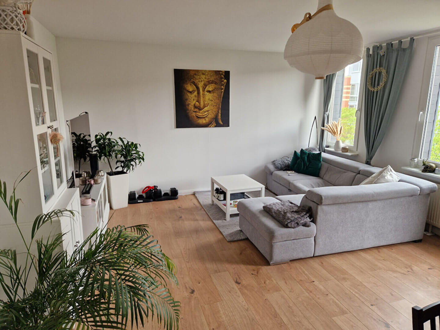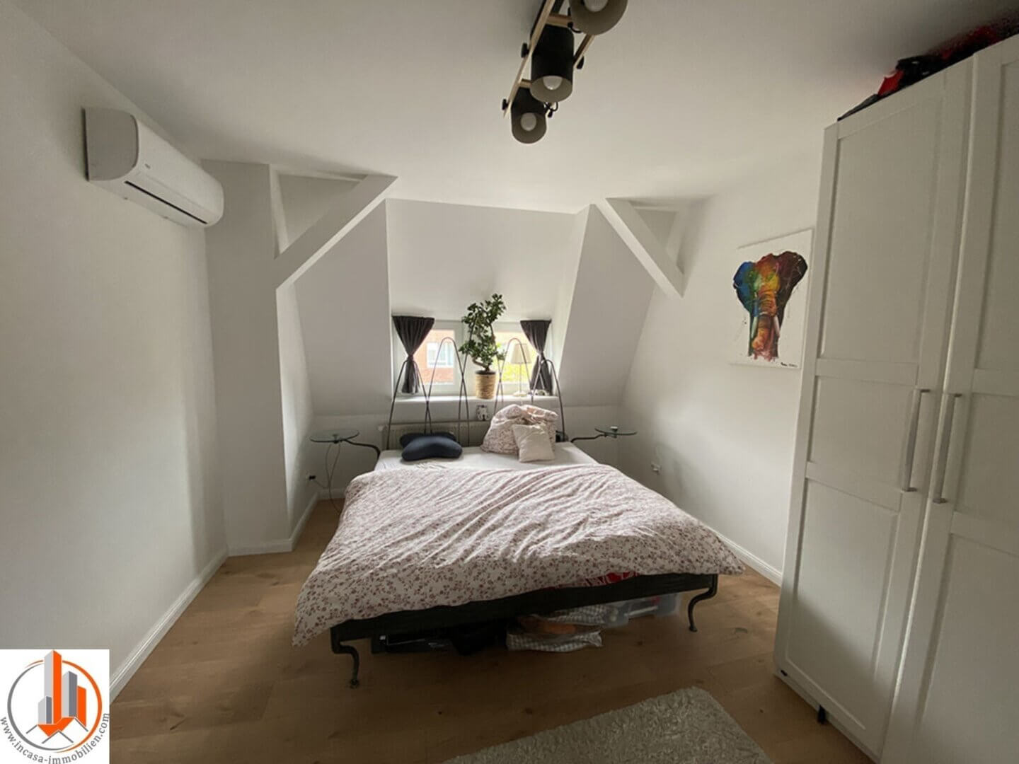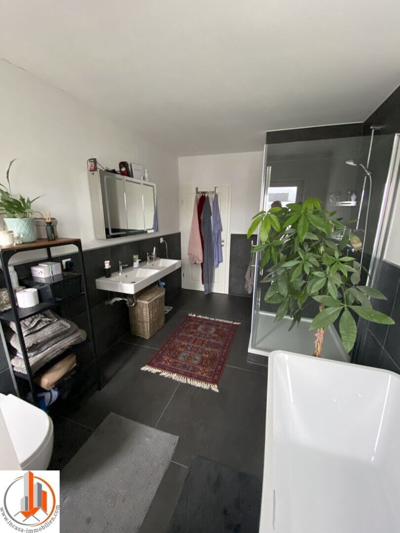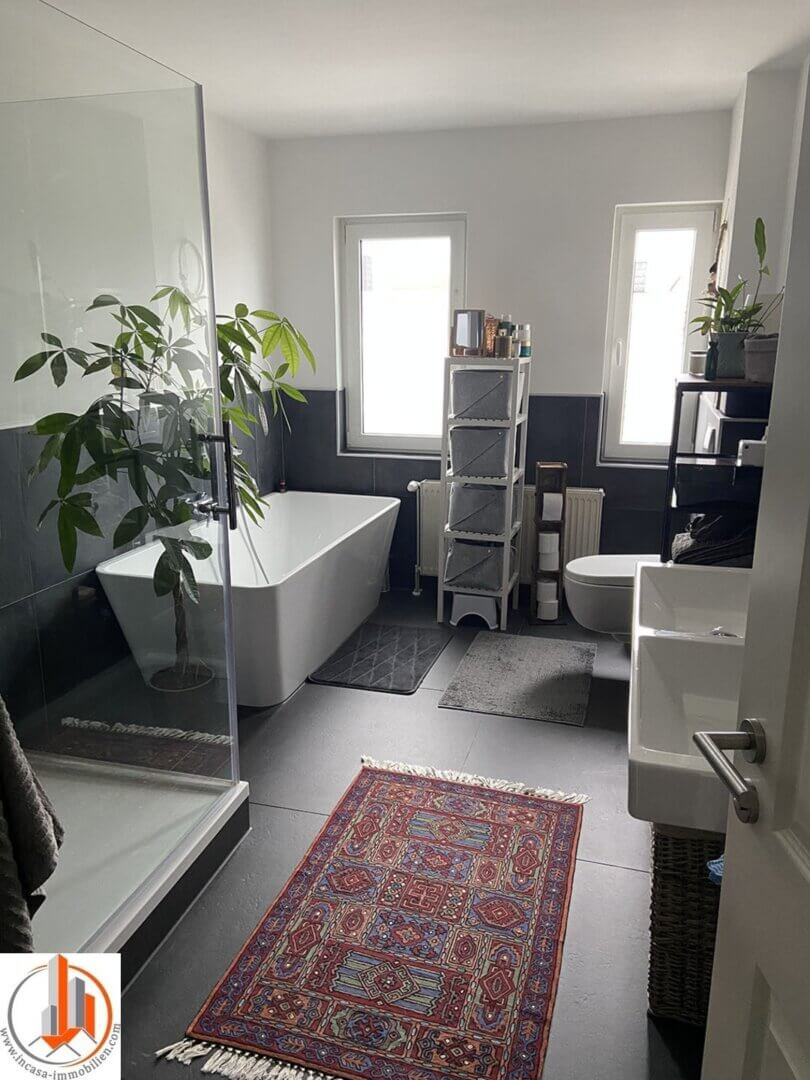 Die 3 Zimmer Wohnung im 3. Obergeschoss ist ideal für Familien mit einem Kind. Sie bietet ein geräumiges Wohnzimmer mit großen Fensterflächen, ein ruhiges Schlafzimmer, Kinder oder Arbeitszimmer, ein traumhaftes Bad mit Wanne und Dusche und einer hellen Küche mit Sitzgelegenheit. Das Wohnzimmer und Schlafzimmer ist mit einer Klimaanlage ausgestattet und kann auch von Unterwegs per Smart Home aktiviert werden. Auf dem verschlossenen Hof befindet sich ein Stellplatz der kostenlos genutzt werden kann.