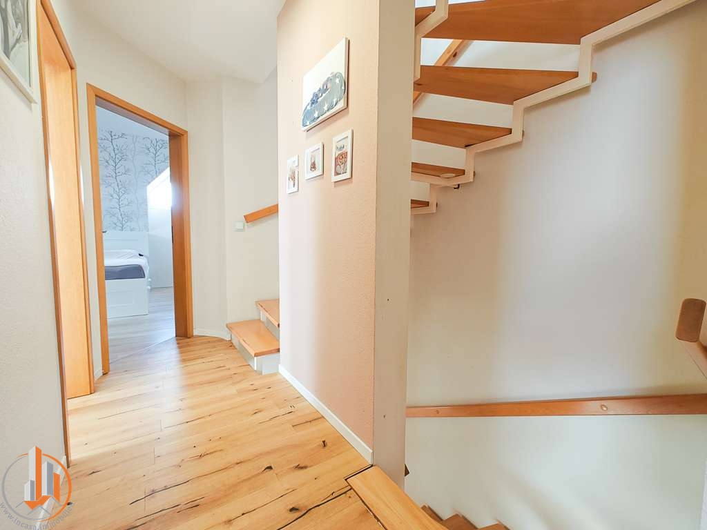 Kathleen: Die ruhige Lage in Wellen ist ideal für Familien, die dem Trubel der Stadt entfliehen, aber dennoch gut angebunden bleiben möchten. Auf ca. 123 m² Wohnfläche verteilen sich fünf Zimmer über drei Etagen – genug Raum für individuelle Lebenskonzepte. Im gepflegten Garten lassen Sandkasten und Spielturm Kinderherzen höher schlagen. Zu gemeinsamen entspannten Stunden mit der Familie oder zu Grillabenden mit guten Freunden lädt die gemütliche überdachte Terrasse ein. Der moderne Glasfaseranschluss ermöglicht reibungsloses Arbeiten oder Streamen im Homeoffice.