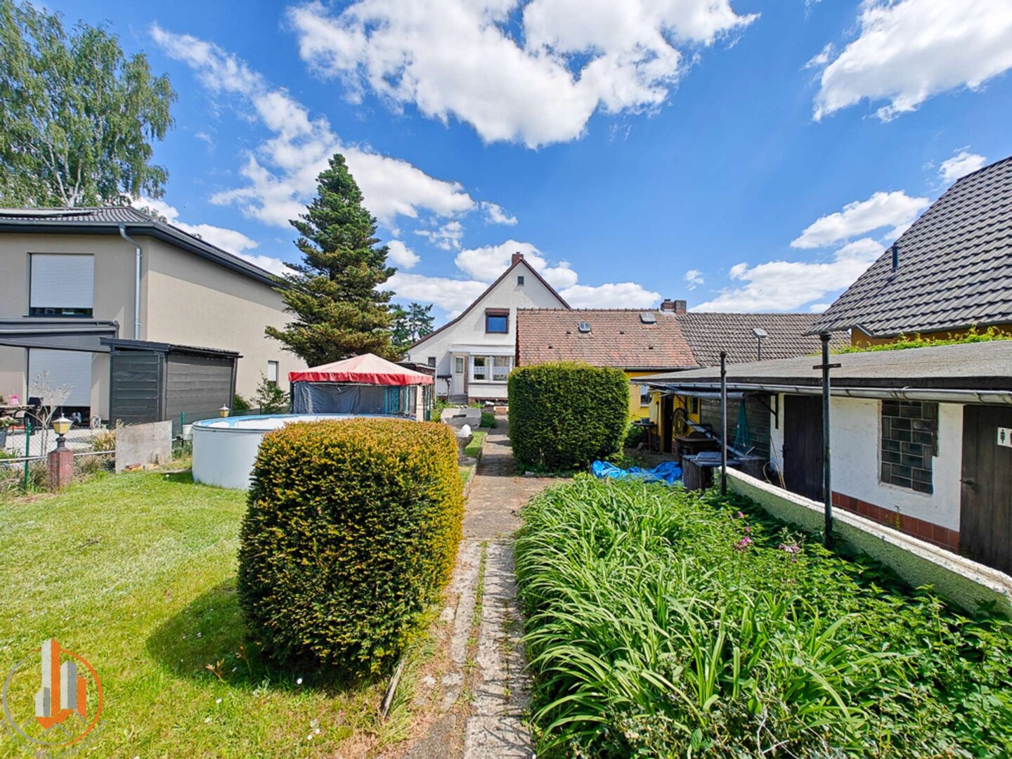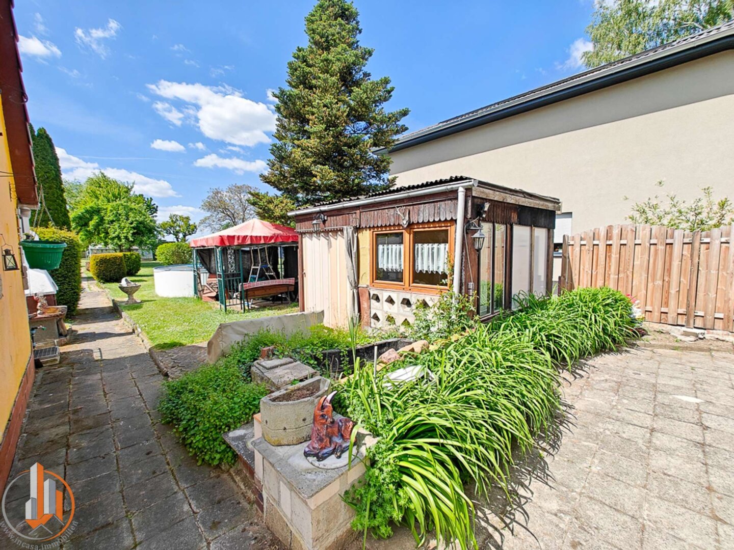 Kathleen: Der Garten ist ein echtes Highlight. Er ist ruhig gelegen, schön eingewachsen und bietet viel Platz zum Spielen, Gärtnern oder einfach nur zum Genießen der Sonne. In einer gemütlichen Sitzecke lässt sich der Feierabend wunderbar ausklingen. Auch die Möglichkeit, ein Gartenhäuschen oder eine kleine Spielecke zu integrieren, ist problemlos gegeben.
