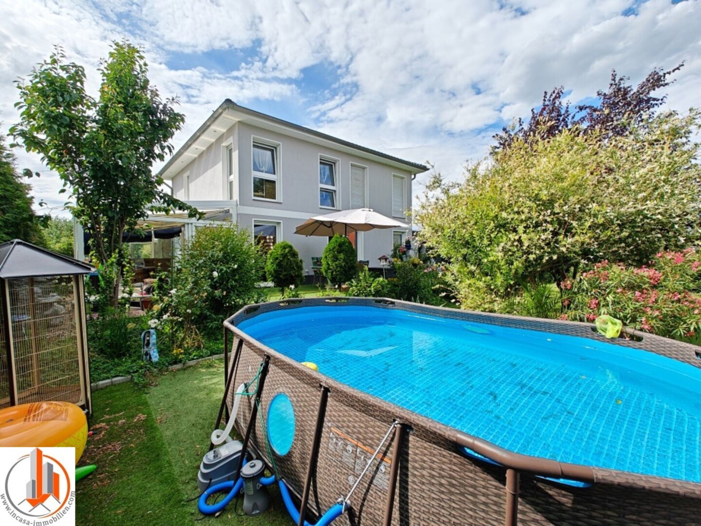 Zusätzlich zu all diesen wunderbaren Eigenschaften gibt es auch einen traumhaften Garten, der perfekt ist, um die sonnigen Tage zu genießen und Ihre kreativen Gartengestaltungsideen umzusetzen. Ein großer Wintergarten vervollständigt das Angebot und bietet Ihnen das ganze Jahr über einen zusätzlichen Raum, den Sie nach Ihren Wünschen nutzen können.