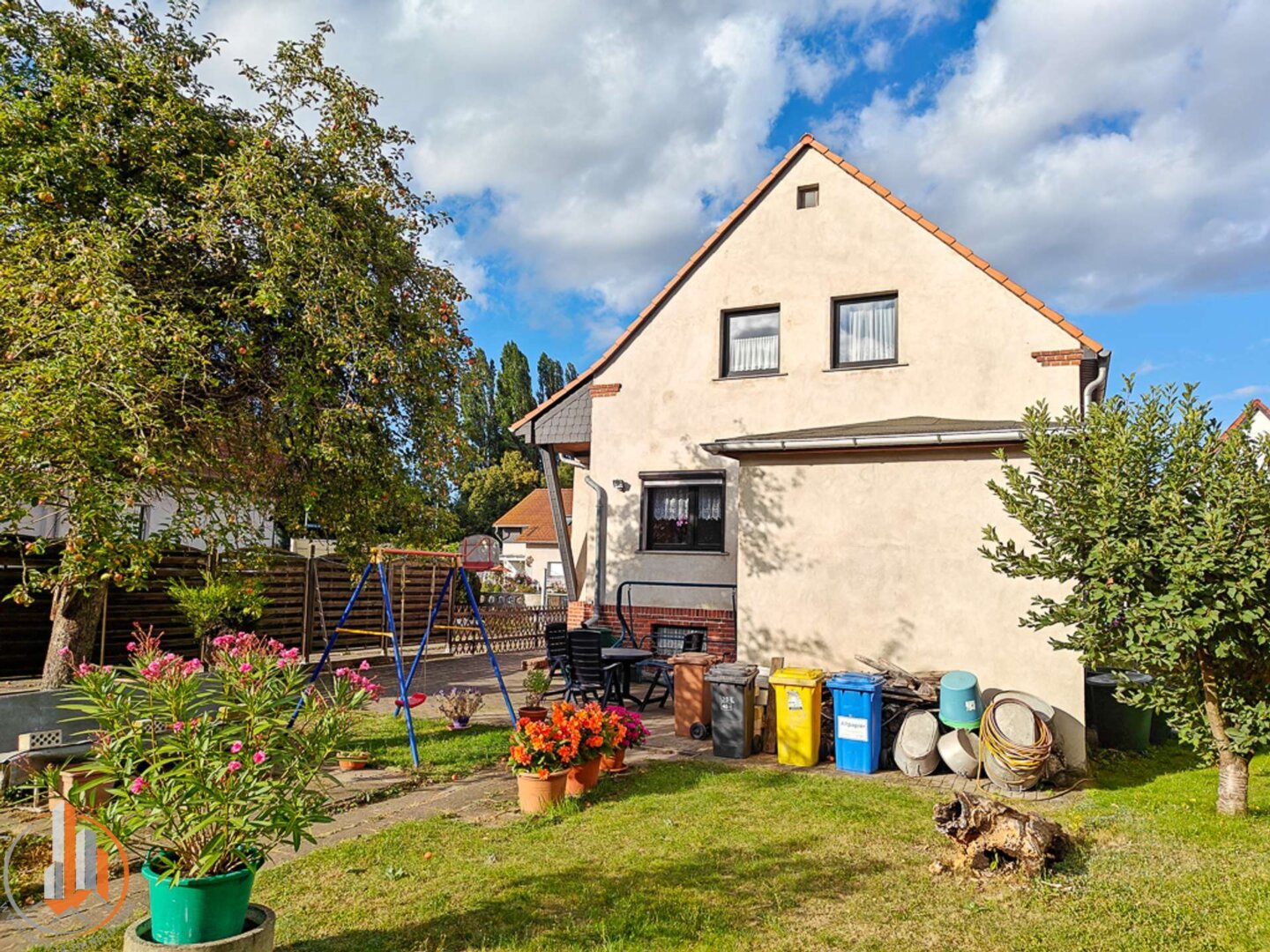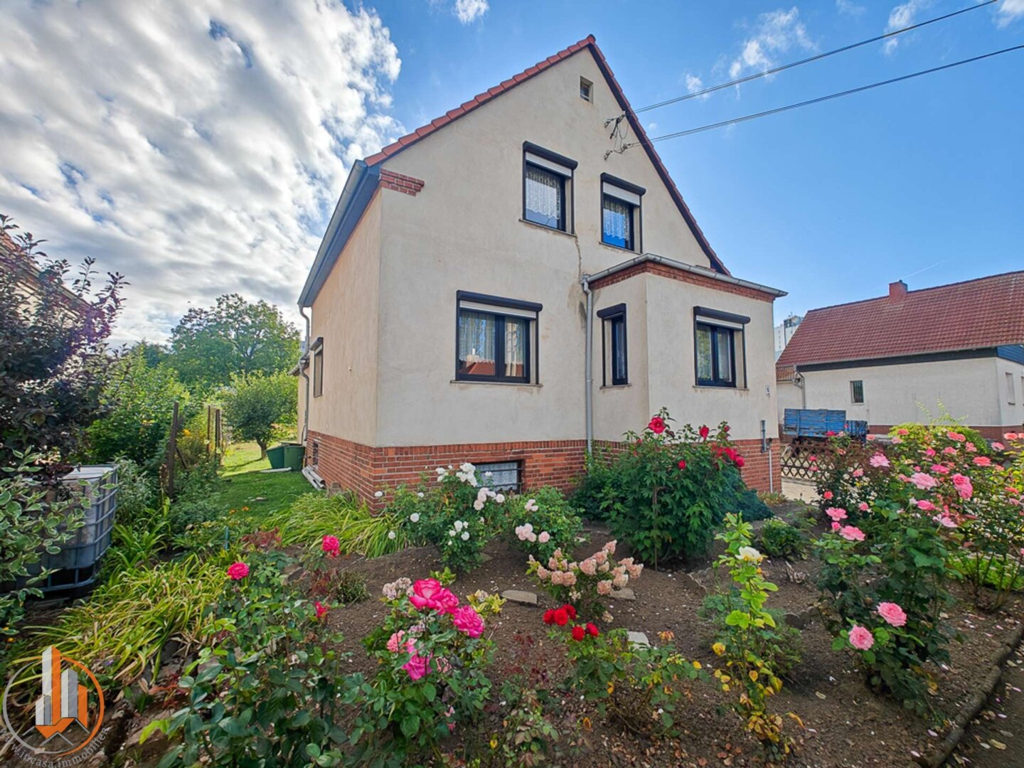 Kathleen: Mit ca. 701 qm ist das Grundstück großzügig angelegt und bestens gepflegt. Ein Nebengebäude bietet zusätzlichen Platz zum Abstellen, Lagern oder für kreative Ideen. Der Garten ist ein echtes Highlight. Kinder können toben, spielen und Abenteuer erleben, während die Erwachsenen gemütliche Abende mit Freunden oder Familie genießen.